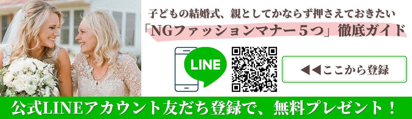 「これって実はマナー違反!?結婚式での親の衣装、NGファッションマナーガイド」を無料プレゼント!